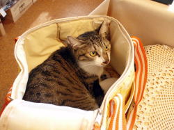 グレちゃんは、バッグのファスナーを全開にしても飛び出すことなくじーっとして…