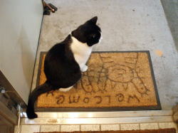 雨の日は、真面目?な店長 入口でお出迎え さあ、お上がりくださいな