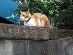 応善寺の塀にいた猫ちゃん 店長出てますよ
