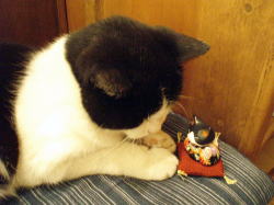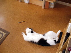 どうやら、ヨガのポーズの練習中みたいです。右の写真は…えーっと、またたびころがしの練習でしょうか?
