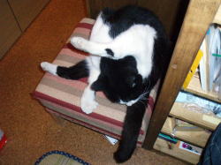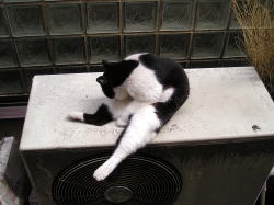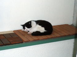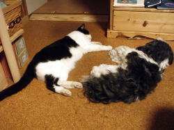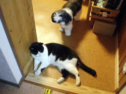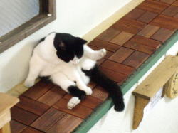 <雷雨が過ぎた後の二匹 仲良くぐったり><ぶっちゃん、インディハウスにて>