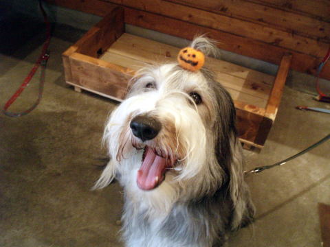 頭には、友人のW子さんお手製ハロウィンカボチャが付いてます