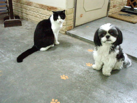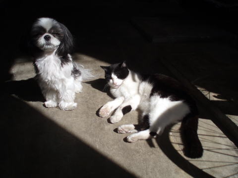 今朝の二人?の様子です。はあ~日差しが眩しくて目が開きましぇん(>_<)