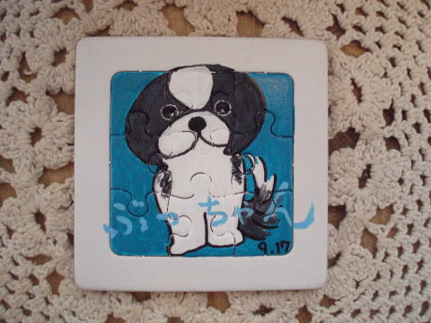 友人が、ぶっちゃんの誕生日を覚えていてくれて、ミニジグソーパズルに絵を描いて