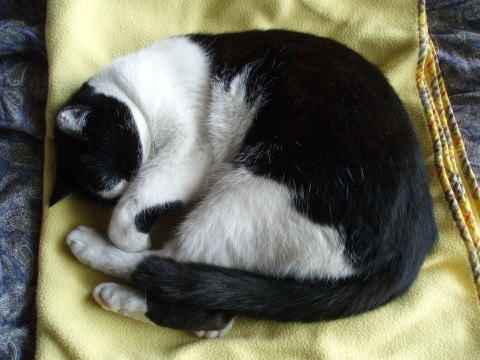 猫はこたつで丸くなる。いやいやまだこたつにはちょいと早いですが、ごん店長とスタッフのぶっちゃんは季節に関係なく、いつもまんまるになって寝ております。