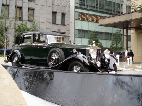 途中で見かけた、ガーデニングショーの一部。賞を取った方の作品と日比谷公園そばにオープンしたばかりのホテル前に、ディスプレイとして置かれていたクラシックのロールスロイスを