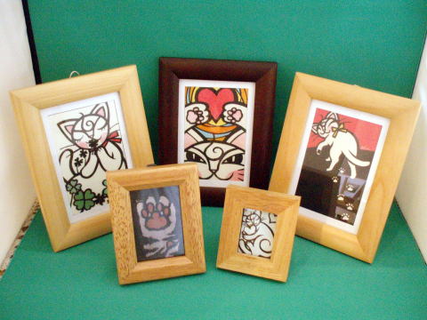 切り絵のミニ額・立体作品・ストラップ・指輪・ミニボトル入りのチャーム・ポストカード