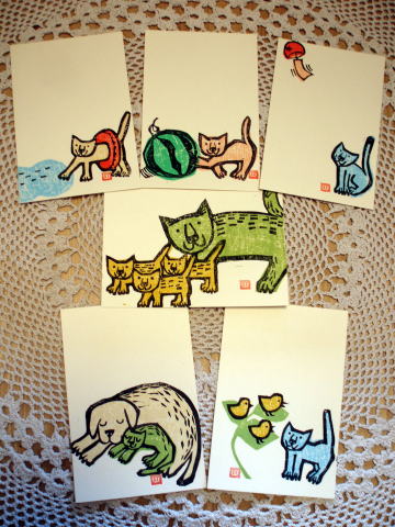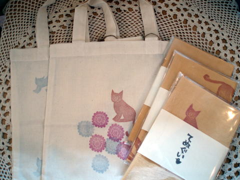 先ずは、版画家「山村アンジー」さんの新作、手ぬぐい・ポストカード・エコトートです。